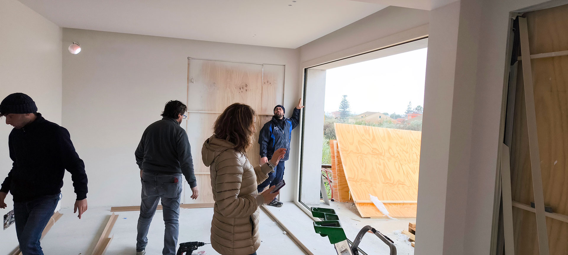 Oggi vedi tubi, assi e polvere; domani vedrai vetro a tutta altezza e una casa che tiene il clima, ferma il traffico e lascia entrare il sole. È così che funziona: tu sogni, tracci una linea; noi la rendiamo struttura, posa, comfort quotidiano—senza pensieri.