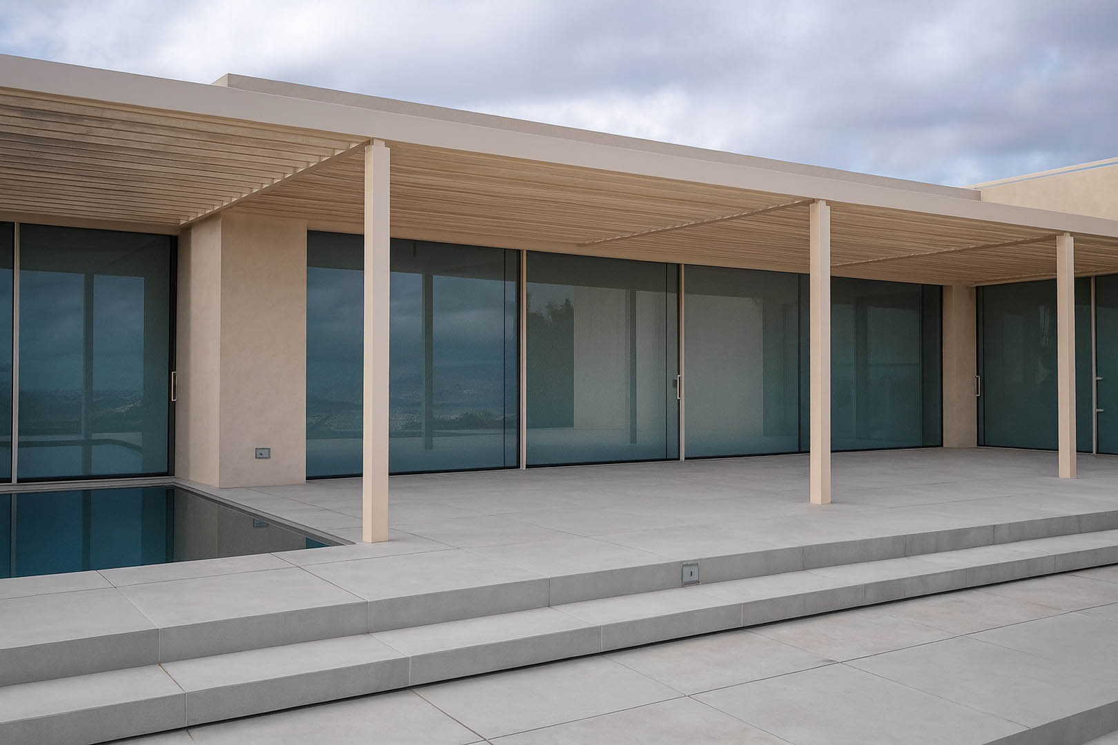Adesso il camminamento in graniglia punta a vetrate che specchiano la valle. I grandi scorrevoli in alluminio appaiono un istante e poi lasciano scena alla luce. Mattina con valle in primo piano, sera con interno silenzioso e clima stabile; weekend come in un museo abitato. La manutenzione programmata è una mail, il resto è panorama.