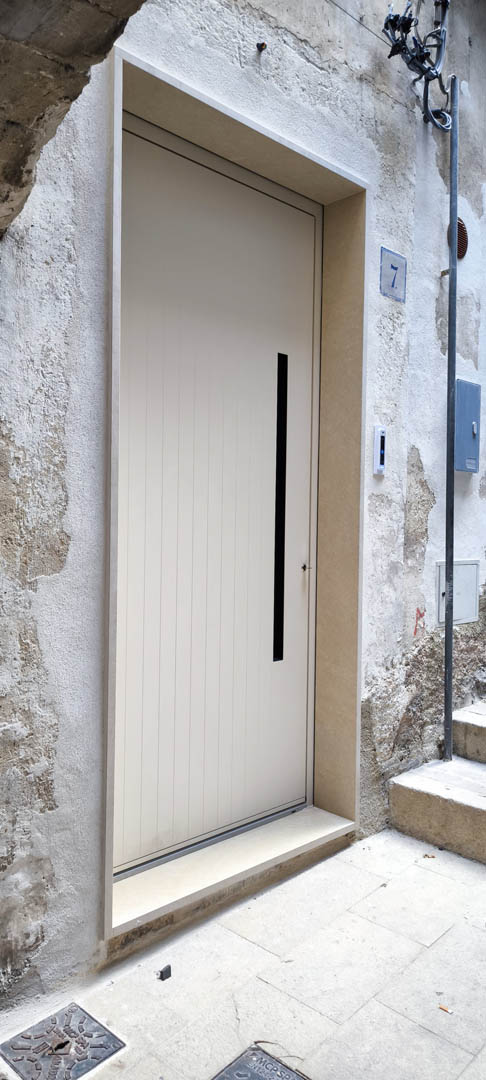 Abbiamo ascoltato le misure strette del passaggio, messo in asse gradini e soglia, curato il taglio di luce. Posa pulita, verifiche su tenuta e chiusura.